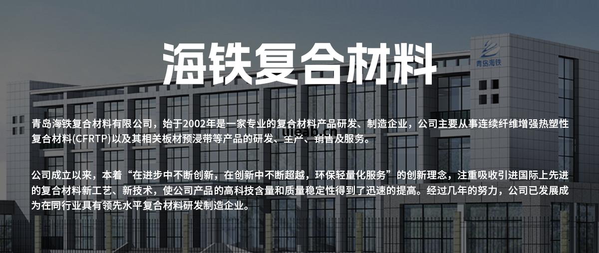 青島(dao)海鐵復(fu)合(he)材料有(you)限公司(si),始(shi)於(yu)2002年是(shi)壹(yi)家專業的(de)復(fu)合(he)材料產(chan)品(pin)研(yan)發(fa)、制造(zao)企(qi)業,公(gong)司(si)主要從事(shi)連(lian)續纖維增(zeng)強熱塑性(xing)復(fu)合(he)材料(CFRTP)以(yi)及(ji)其(qi)相關板材預(yu)浸(jin)帶等產品(pin)的(de)研(yan)發(fa)、生產(chan)、銷售及(ji)服(fu)務(wu)。